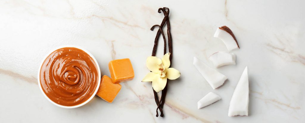 Though this creamy, soothing scent, opening with notes of Orange & Mandarin, is dominated by Vanilla, hints of Caramel & Coconut float by, giving a lightly, spicy feel. The middle notes include Heliotrope & Tonka Bean, giving over to a