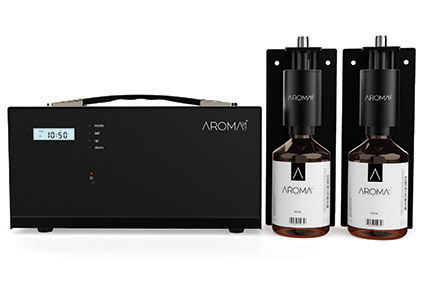 The AirMax+ diffuser, with smart controls and a safe lock, covers up to 150 cubic meters, uses a 500ml refill, and allows Bluetooth intensity adjustment, either wall-mounted or standalone.